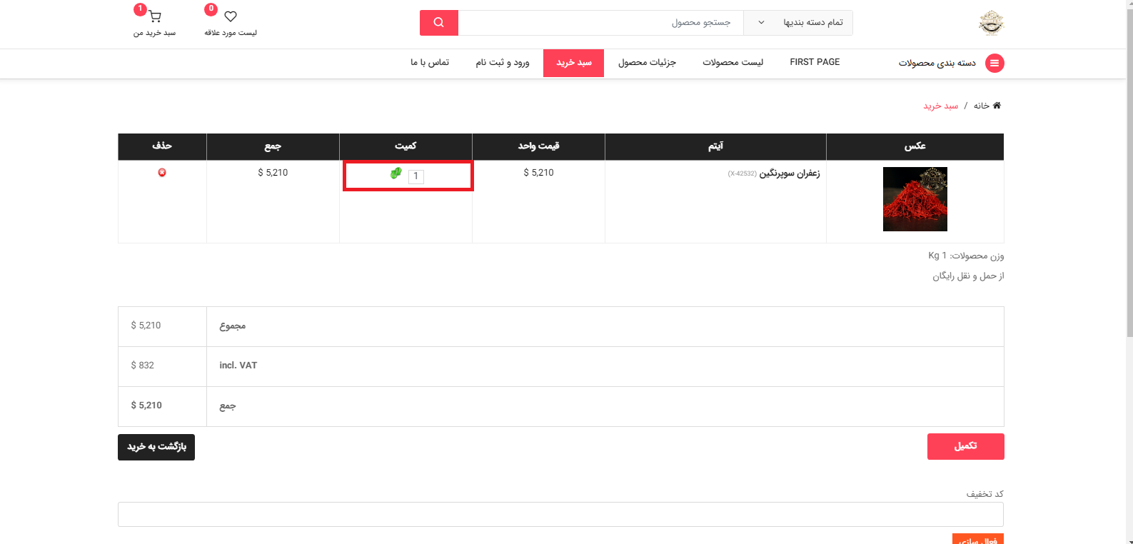تغییردر تعداد محصولات و انتخاب دکمه بروز رسانی سبد خرید و در آخر دکمه تکمیل را انتخاب می کنیم