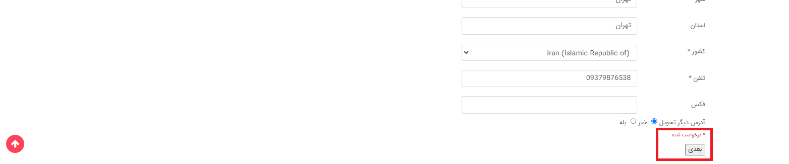 در اینجا اگر می خواهید محصول را به آدرس دیگری ارسال کنید ، پس از انتخاب بله ، آدرس جدید را در قسمت ایجاد شده وارد کرده و سپس دکمه بعدی را انتخاب می کنیم