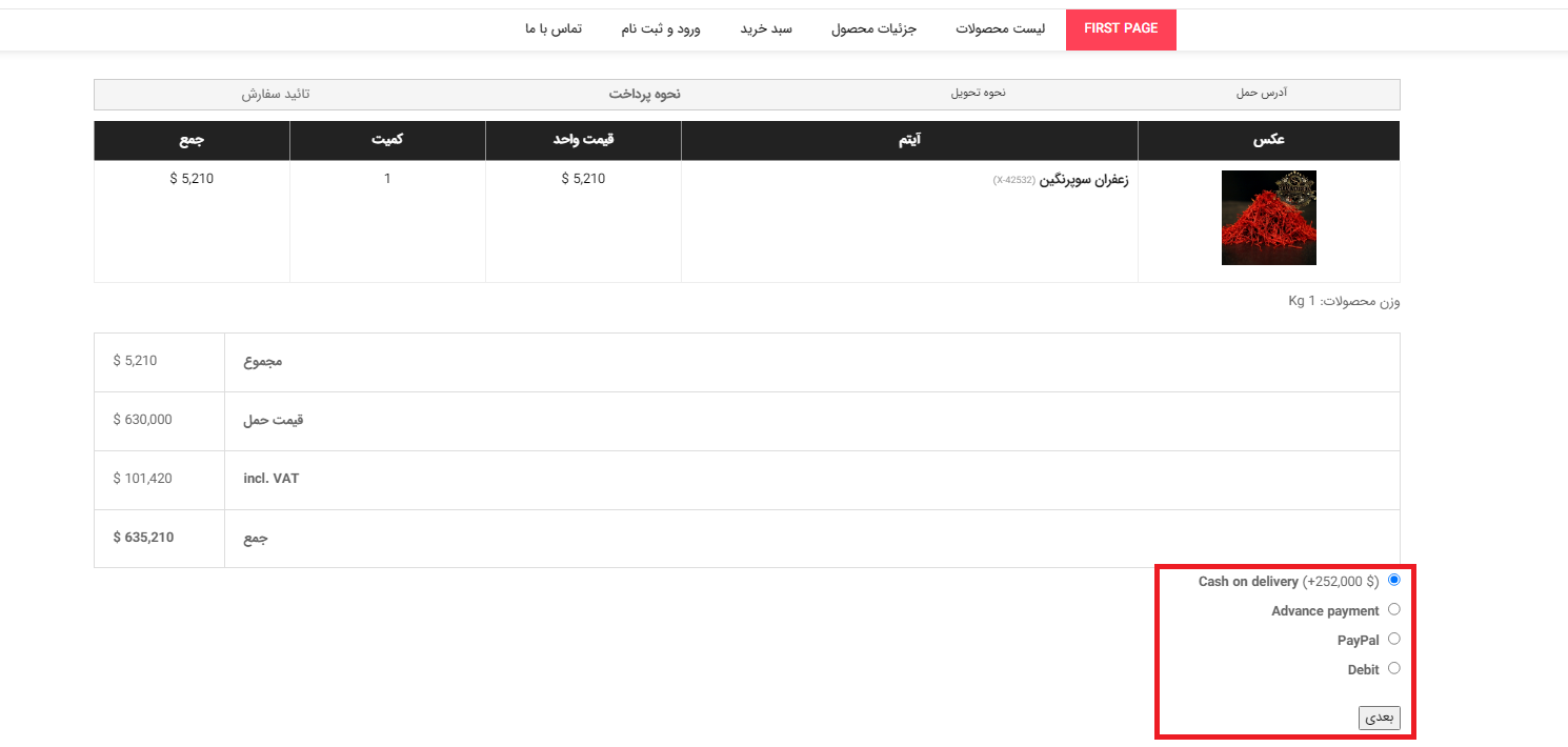 در اینجا روش پرداخت را انتخاب می کنیم سپس دکمه بعدی را انتخاب می کنیم
